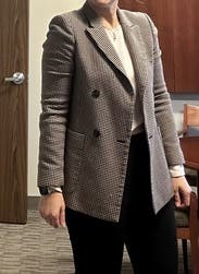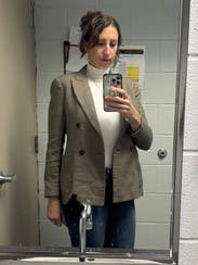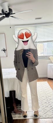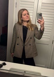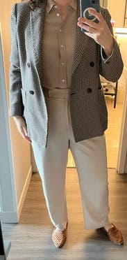The perfect blazer. Material isn’t stiff. Shape remains. The pattern is so versatile.