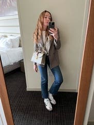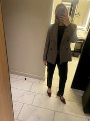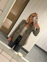 Such a perfect blazer that can be dressed up or worn with jeans. I wore it with jeans and a black cami and received loads of compliments. Wish I could keep but still out of budget.
