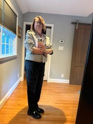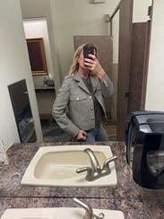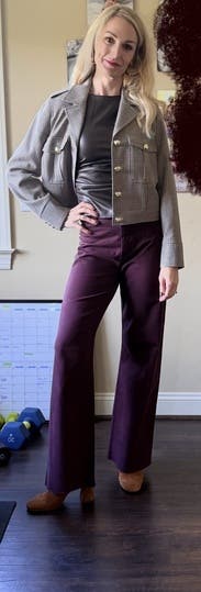 The photo is not my final look. I was just trying it on to see the fit. It is a bit dressy for weekend errands but would be great for work or a luncheon. I would size down! The 8 was too big. I could have done a 4-6. I thought this brand ran small but the jacket was boxy