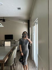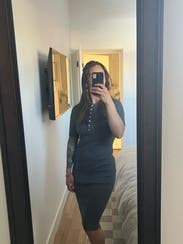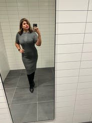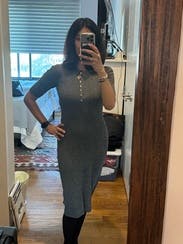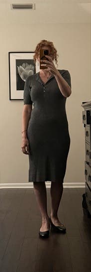 Love love loved this dress! Perfect for fall transition (and came with tags on!). Super soft knit material. Fit was so flattering. Great for 50 to 60 degrees out, I would say.