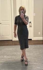 Liked it a lot and fit true to size, but the knit was a little thin and as a curvy girl I definitely felt I needed shape wear