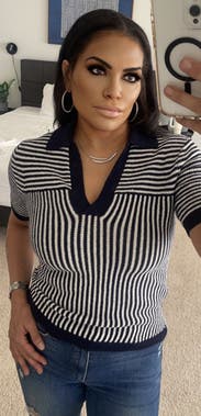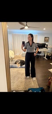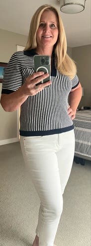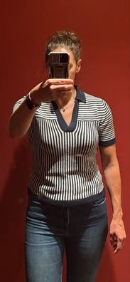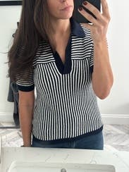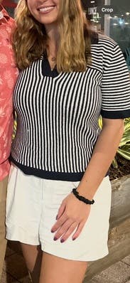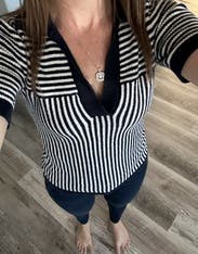 Adorable navy and white polo. Very comfortable.
