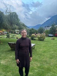 Flattering, comfy, holds its shape. Beautiful brown color.