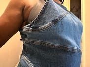 Cool halter style dress made this dress comfortable even with the amount of denim fabric. Definitely good for taller women, may overwhelm shorter women with all the fabric!!