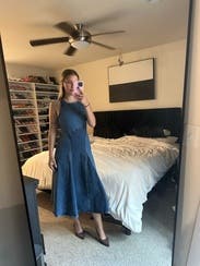 Loved this easy denim dress. Perfect zip closure in the back made me reach for this rental multiple time. Denim was thick in a good way. Loved it.