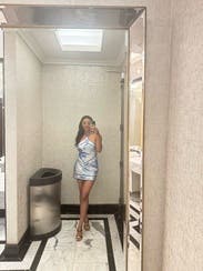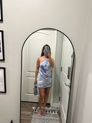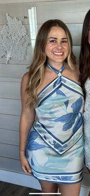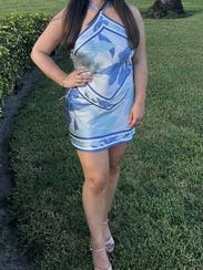 this dress was perfect for my miami trip, it’s super adjustable with the halter tie and back tie. recommend pairing with nude or silver accessories.