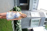 Gosh the fabric is stunning. Sooo pretty. And sooo short. I sized up, hoping it would give more length, but it actually was worse since it gaped.