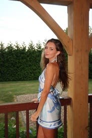 This dress is soooo gorgeous and luxe! Not bra friendly and everything is tied in the back & neck, so need to be comfy but perfect for vacation or party