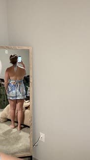 Loved the open back, hits in all the right places. I love that it almost looks like a set but it’s an attached dress. I got a L bc it was the only size left and made it work, but probably should’ve went with a M.