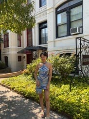 I wore this out for my birthday weekend in ocean city. We went to seacrets so the shortness of it was fine for a beach bar. I would never have worn it out in a city. It was flattering and an easy throw on. I didn’t wear a bra or use double sided tape and it was fine all night. I did tie it tight around my neck. I am a 34D. I loved that the top part could accommodate a smaller size than the bottom part. I always run into the problem where dresses fit my hips and then aren’t flattering in the top area. Bottoms I am usually a 12 and top an 8/10.