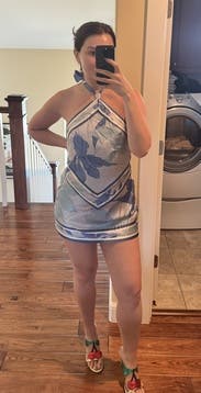 Wore for a love island themed birthday party!!! So cute and sexy! Would have been a little short for any other occasion but it kind of fit the theme lol. I used fashion tape in the front to keep from flashing everyone