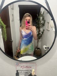 This was really cute for my night out at south beach Miami! It was a bit short for my liking. I have a larger chest, and it didn’t give much support. Other than that? Loved the colors and the materials! If you’re a bigger girl, I would just size up.