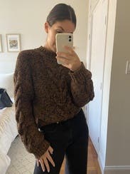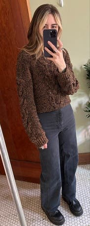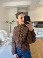 Wore this almost every morning I had it. So cozy and soft. Balloon sleeves make it a bit more of a look, loved the shape and the big fat cable knit on front. Just great!