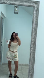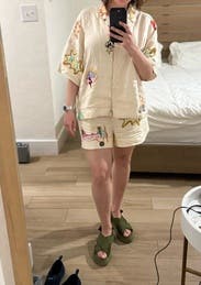 These shorts are cute and very comfortable. Not the most flattering but worked good as a coverup or as lightweight vacation shorts. Top is boxy.
