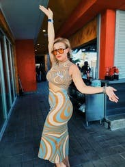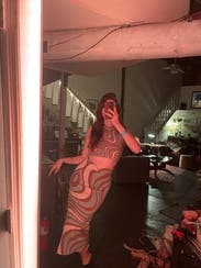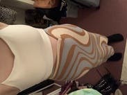 I received many compliments on this unique and fun outfit at a Las Vegas exotic car club event. I think a size small skirt would have been perfect but it wasn’t available during my rental dates. FYI the ruching on the front does not his the centerline as picture in the product description rather, it is slightly to the left. Very comfortable outfit and knit fabric keeps snug no matter how much you sit, stand and move in it.