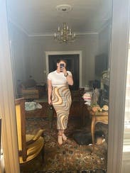Hugs curves perfectly - this fabric is so thick and comfy, super forgiving. Def will rent again!