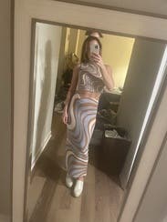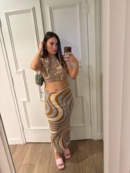 I paired the top and the skirt together but liked the top on its own - I definitely would not wear the skirt on its own. It was a little big in the waist. The pattern was fun, I wore with white cowboy boots. The material is thick and fairly warm, it’s probably not a summer set.