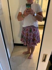 I got this to match the shirt ... shirt didn't flatter my body type so did not end up wearing skirt either. Skirt was a bit long and frumpy on me and had plenty of room so probably could have sized down (elastic waist). Nice quality.
