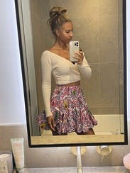 Ironing this skirt takes forever!! But it's cute on. Probably won't rent again bc of the hassle