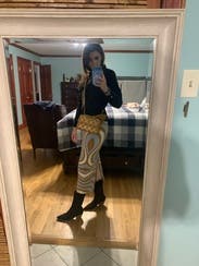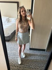 I wasn’t even sure I liked this a lot but wore it out for a night in Nashville cause I liked it with my cowboy boots. At least 15 people - girls and guys - told me they loved it. The matching skirt runs a little big, but the outfit was super comfortable. Top is very cropped and hits right below the bra