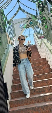 This is an amazing top. It’s skintight but shows off your shoulders and midriff perfectly. The print was so fun. I wore it with looser fitting pants to balance it out