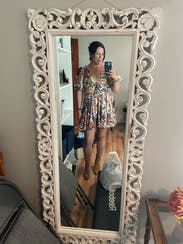 Definitely one of my favorite dresses I’ve ever worn! The fit was absolutely perfect & the dress was so beautiful. In love with the colors & fabric. I was also still able to wear a strapless bra with it. 10/10 recommend!