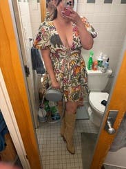 I'll start by saying this dress is VERY lowcut - I used fashion tape to keep it secure, and I don't think it would play well with a camisole or bra underneath. But if you can make that part work, the rest is FABULOUS. The material and pattern is even more beautiful in person, and the full skirt makes for the best spins. I wore this for a dance party with shorts underneath and had the BEST time.
