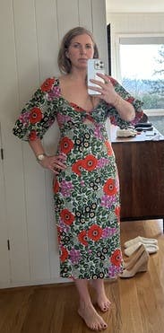 I wore this dress twice - once during vacation in Costa Rica and the second time around for a wedding in Santa Barbara. So chic and perfect! Received a ton of compliments. If you’re on the fence, add it to your cart. You won’t regret it. At first I was hesitant about the sleeves, but it truly adds to the dress. Hope to purchase the dress in the future.