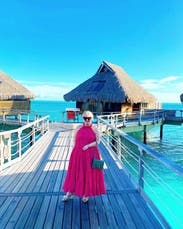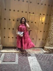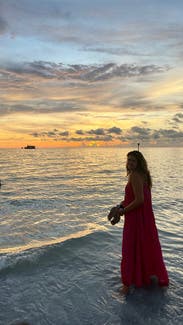 This dress made me feel very elegant but was light and breezy. I loved the color! It was super bright and there's a bit of a textile pattern on the fabric to add some more flair. I really loved this dress for the location!