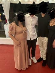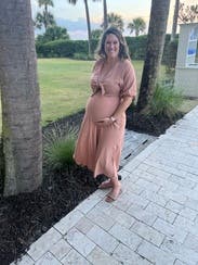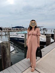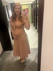 I really liked this dress and it was a great maternity dress. I received lots of compliments on it and surprisingly really liked the color. I did have to wear a bralette with it because it was pretty revealing for me up top.