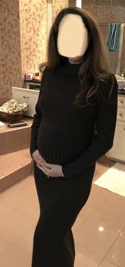 I wore this to my husband’s holiday party around 6 months pregnant and was happy with my choice. It’s comfortable, warm, and modest. It is obviously form fitting so just something to keep in mind, I wore maternity spanx just because I felt better with how the dress looked with them. There was some bunching in the sleeves because the sleeves were a little long for me and also a little in the boob area because it rode up a bit. But overall I would recommend it for every day, work, or less formal events.