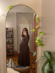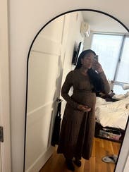 I wore this to work, sorry I forgot to snap a pic. It wasn’t a showstopper, not super special, BUT it was comfortable alllll day long and cute. I probably should’ve gone for the M, the large was a little big but not bad. I’m 5’7” and unsure of my weight at 33 weeks pregnant.
