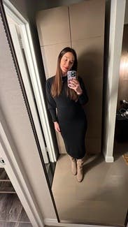 Loved it! Perfect fit at 18 weeks pregnant & finally felt cute in something. Kept me warm in 40ish degrees with a light jacket. Would have worn again if I had an excuse for it.