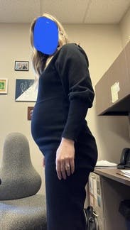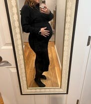 Wore this to work at 32 weeks. Very comfortable but I’m glad I sized up from my pre-preg size.