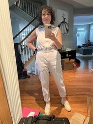 Wore this outfit to a charity event from my daughters school. Dresscode spring vibes paired it with heels and a flower hat. Also wore it to a normal work day with white Jordan's. This jumpsuit is definitely a feel good outfit.