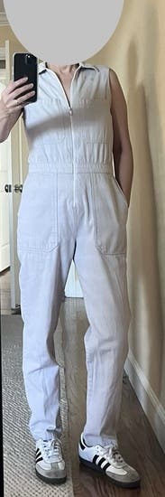 I am usually wear a small or a medium so I rented the small to start and OH BOY! I couldn’t even get close to zipping the jumpsuit up. Ooof. I got my legs in and that was it. Thankfully I was able to exchange it for a different size and I sized up to a large. I am glad I did because the large was the right fit. I like the utility jumpsuit look and this did not disappoint. The color gave it a nice feminine touch.