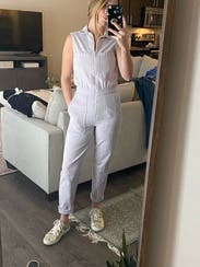 Love a jumpsuit with pockets that zips! Cute and fun. Not as good as other rivet jumpsuits.