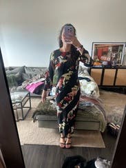 Got so many compliments on this dress! Ordered the small and the medium, small fit my shape a little better, but the medium had better length (I’m 5’7, and wanted the dress to go down to my ankle) the small was a little short, so went with the medium!