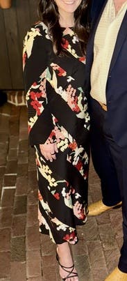 I love anything Rixo and this was another winner. It is a bit see-through but I added a slip underneath and it was no problem. I wore this with heels to a work dinner, but could easily dress down with boots etc. Wanted to buy!