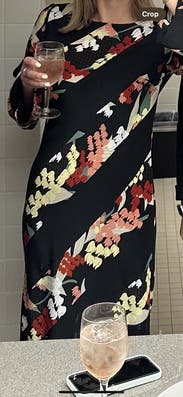 wore to an engagement party + a cocktail wedding, very comfortable and easy to wear, but a little thin!