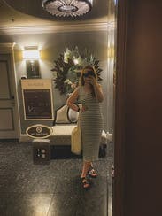 Loved this dress more than expected - I styled it casual with sneakers and also dressed it up with a blazer for work. Hugs your curves, so I wore shapewear to help smooth things out. Would be a really cute maternity dress. I will probably rent again in a smaller size as the length was a little long and waist a little big on my 5’2 frame.