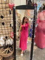 Wore for a pink themed day during a bachelorette - cute! My boobs didn’t fill out the chest so had some bra slips but nothing terrible