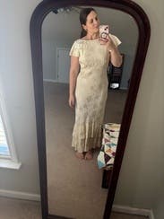 Wore this for my rehearsal dinner and got so many compliments. It's a very elegant and flattering silhouette with vintage charm