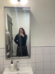 I really liked this sweater. It's slightly scratchy but it's one of those sweaters that you can kind of sink into since it's a tad oversized. Many people complimented me on it. I felt a bit like a doll wearing this kind of style with the embroidery and scalloped collar. I tried wearing it with the rixo skirt that was also navy and floral. It more or less worked except that the rixo skirt is for summer and not winter (fabric might as well be tissue paper).