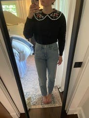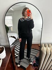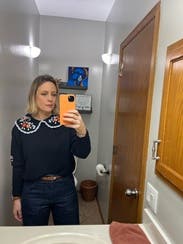 Glad I sized down as the reviews suggested. This sweet little sweater was a great weight and the collar details made it interesting and elevated. I wore this with jeans on the weekend and paired with dress pants for the office. Not everyone’s taste, but I enjoyed the notorious RBG references :)
