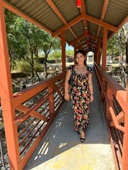 The dress was beautiful and flattering but between the scalloped neck and the keyhole a bra is impossible and so is tape. It just couldn’t hold my bust so I didn’t feel comfortable wearing.