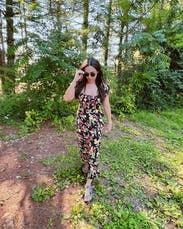 I wore this for a bridal shower in the summer and really loved the way I looked! The only concern I had is that the material is very thin and despite being black, is a little see through in the right lighting. The top was very flattering for me, but if you have a larger chester you might have some concerns about the cut!