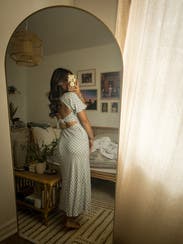 Probably my favorite rental to date. The dress was silky and so comfortable, and flattering on my body. I did have to be careful with my underwear showing out of the top of the bottom part but I made it work. I'm a 6/8 and glad I went with the 8, I believe the 6 would've been too tight in the hips.