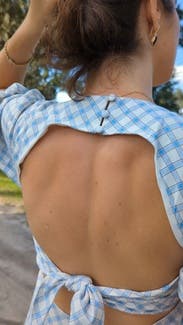 Had my eye on this dress forever and I’m glad it worked!! I sized up by one size and it was easy to adjust with the tie in the back. The photos make it look like gingham but the pattern is slightly different. It is quite low cut but worked for my smaller bust.