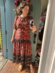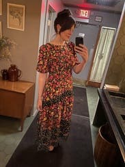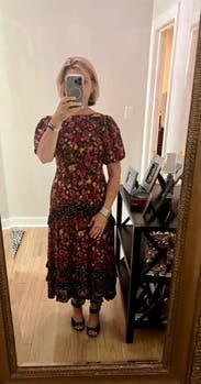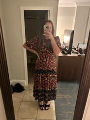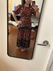 I rented this dress for a Hispanic Heritage Month event based entirely on the sheer number of positive reviews! Tbh I was skeptical. It’s not my style per se and felt like a long shot if I’d actually like it. Different patterns, polka dots and florals, ruffles, lots of color — it’s doing a lot in the best possible ways! It’s completely stunning! Can’t recommend this one more highly. Compliments for days!